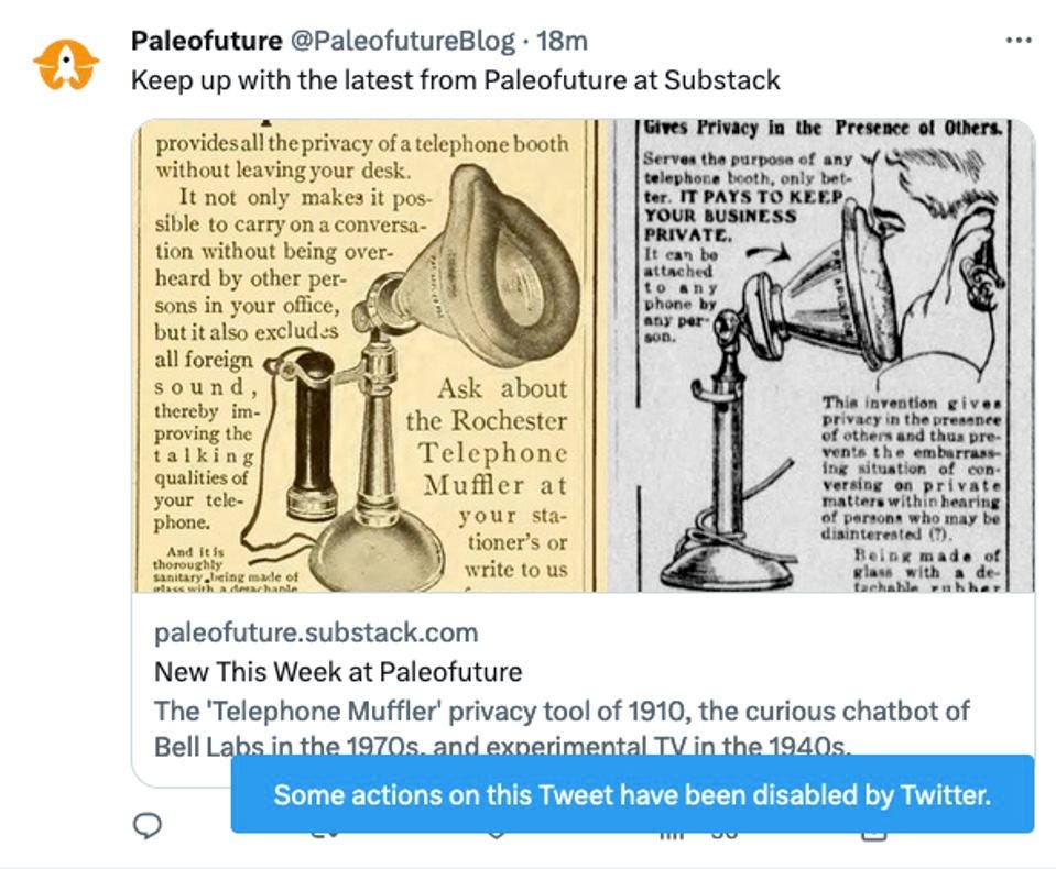 Again, you can see the warning at the bottom of the image below, which I captured while trying to retweet a post from my Substack blog, Paleofuture.